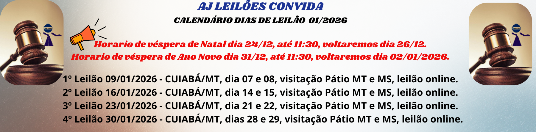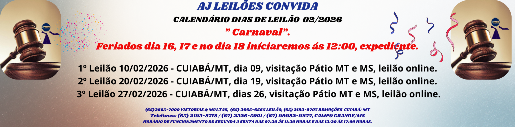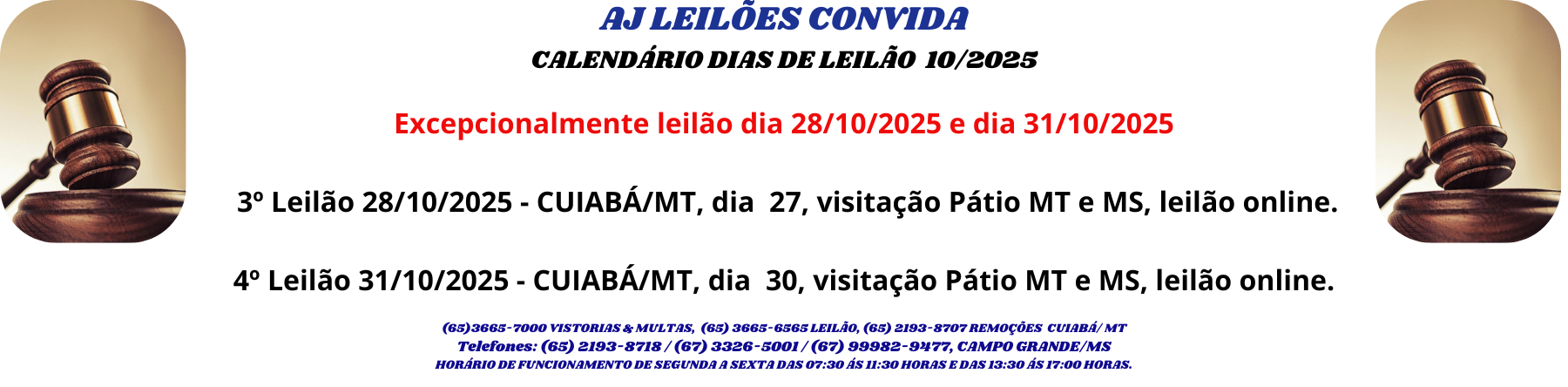 Av. Ayçar Saddi, s/nº, Bairro Jardim Presidente - Cuiabá/MT. Fone: (65) 3665-7000. | E-mail: suporte@ajleiloes.com.br