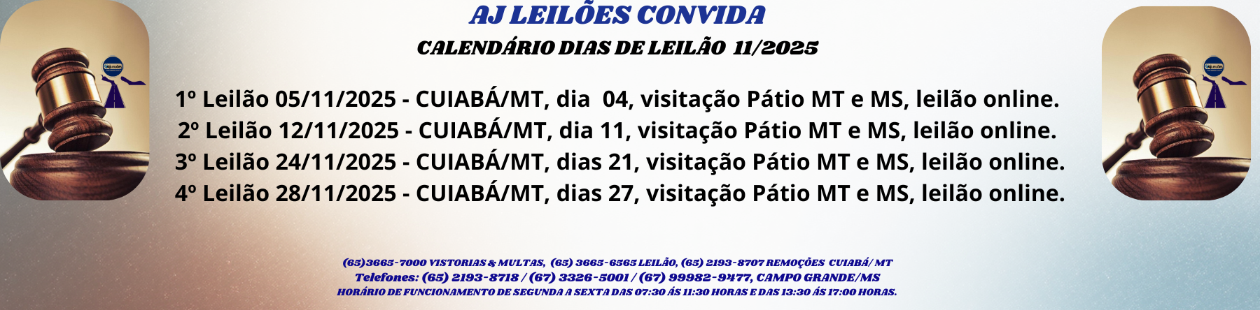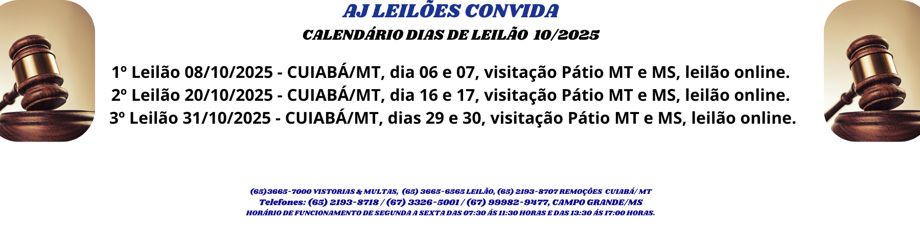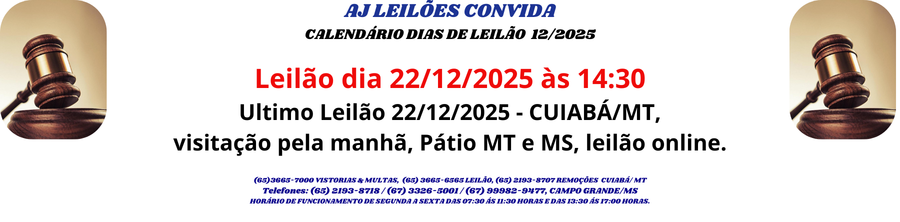 Av. Ayçar Saddi, s/nº, Bairro Jardim Presidente - Cuiabá/MT. Fone: (65) 3665-7000. | E-mail: suporte@ajleiloes.com.br
